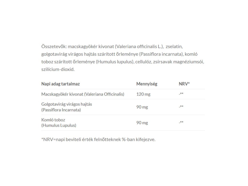 Nepřekračujte doporučenou denní dávku! Vzhledem k obsahu kozlíku lékařského (catnip) vyžaduje jeho užívání zvýšenou opatrnost při řízení. Pokud po užití doplňku stravy pocítíte ospalost nebo závratě, nesmíte řídit ani obsluhovat nebezpečné stroje! Kozlík lékařský (catnip) může zesilovat sedativní účinek barbiturátů, alkoholu a benzodiazepinů.Dávkování