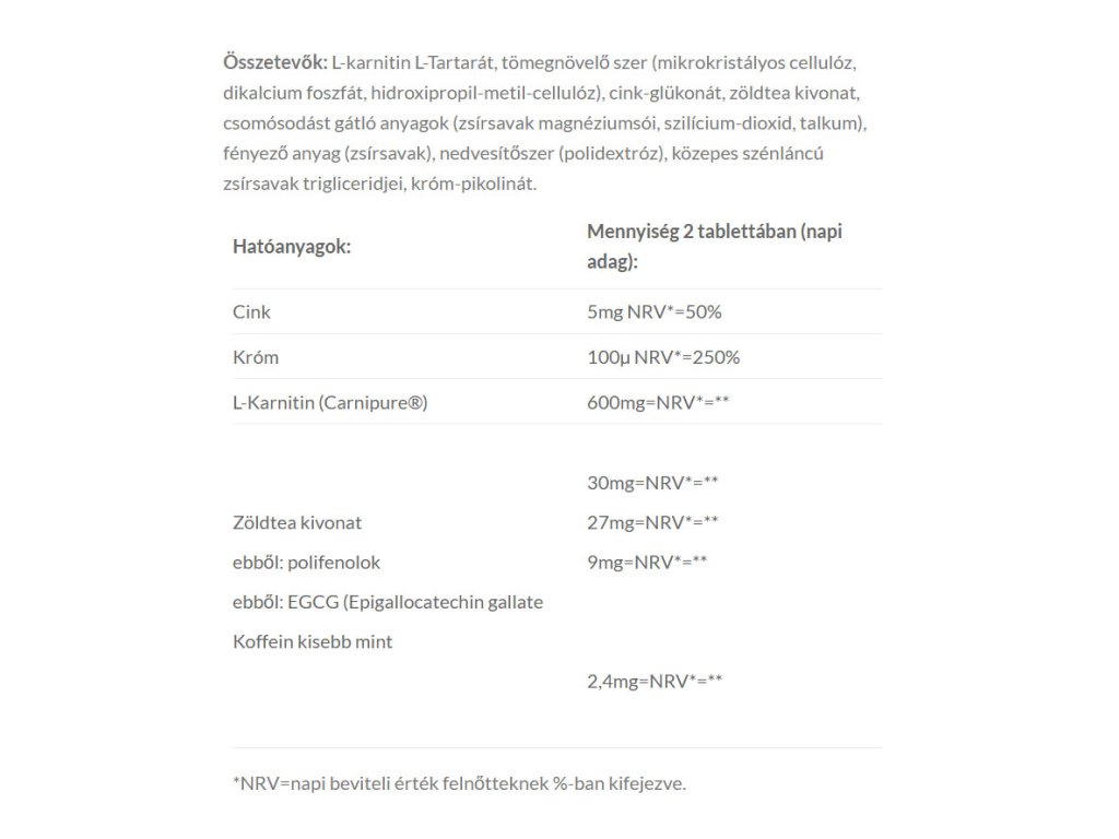 600 mg L-karnitinu v denní dávce. JutaVit L-karnitin obsahuje 100 % světově patentovaného karnitinu Carnipure®, který byl vyvinut výzkumníky společnosti Lonza ve Švýcarsku. Denní dávka přípravku (2 potahované tablety) obsahuje 600 mg L-karnitinu. Přípravek obsahuje pouze organicky vázaný, vysoce využitelný pikolinát chromu. Podle literárních údajů je organický chrom z pikolinátu chromitého lépe využitelný než anorganické sloučeniny chromu (chlorid chromitý III). Chrom přispívá k udržení normální hladiny cukru v krvi. Chrom a zinek přispívají k normálnímu metabolismu makroživin. Přípravek rovněž obsahuje pouze organicky vázaný, vysoce využitelný glukonát zinečnatý. Podle literárních údajů je organický zinek z glukonátu zinečnatého lépe využitelný než anorganické sloučeniny zinku (oxid zinečnatý). Zinek přispívá k udržení normální hladiny testosteronu v krvi. Zinek se podílí na normální syntéze bílkovin. Zinek se podílí na normálním metabolismu mastných kyselin a sacharidů.
