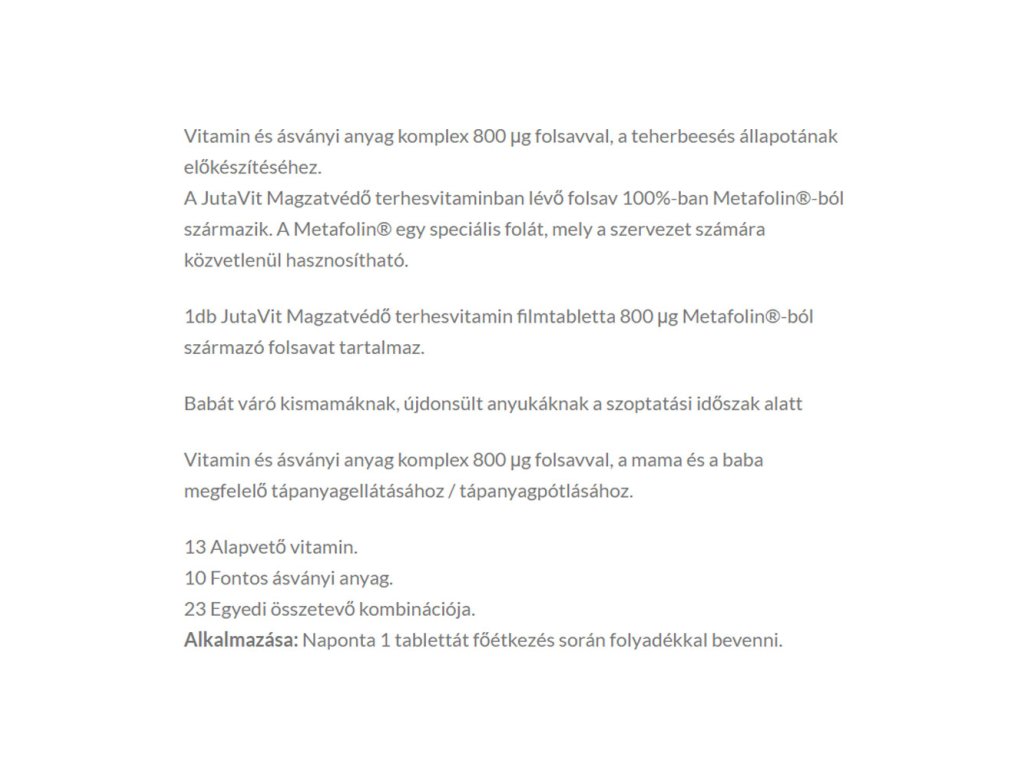 1 těhotenská potahovaná tableta JutaVit Fetal Protection obsahuje 800 μg kyseliny listové pocházející z Metafolinu®.