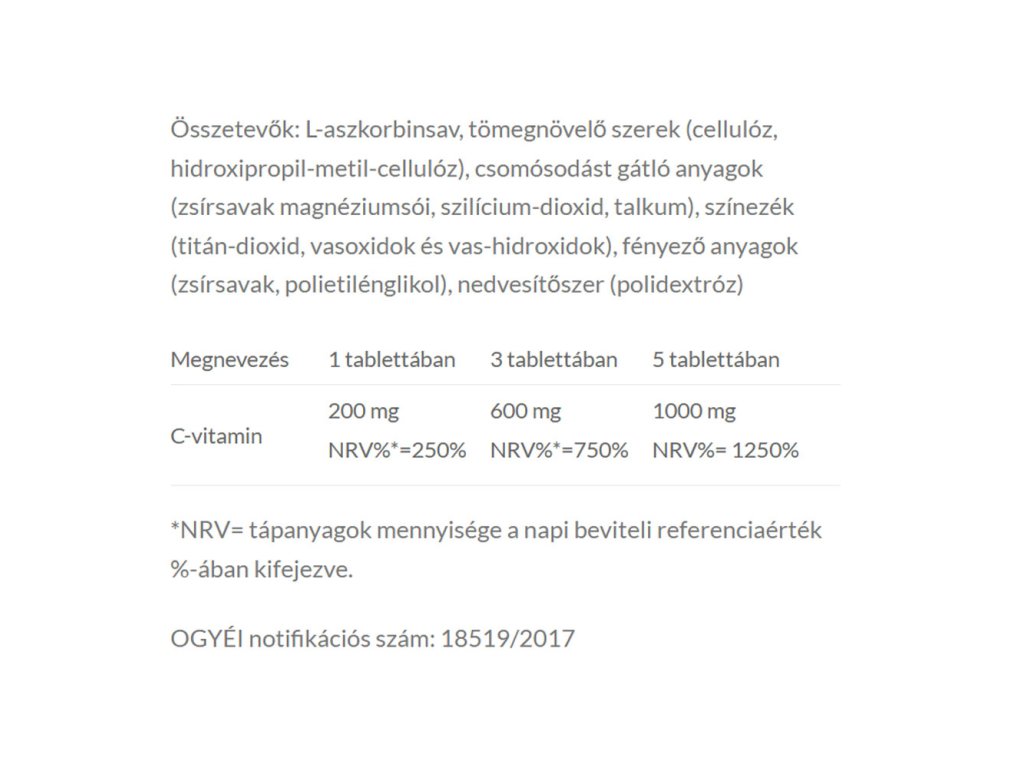 Vitamin C přispívá k normální funkci imunitního a nervového systému, ke snížení míry únavy a vyčerpání, k udržení normálních psychických funkcí a k ochraně buněk před oxidativním stresem. Vitamin C zvyšuje vstřebávání železa.