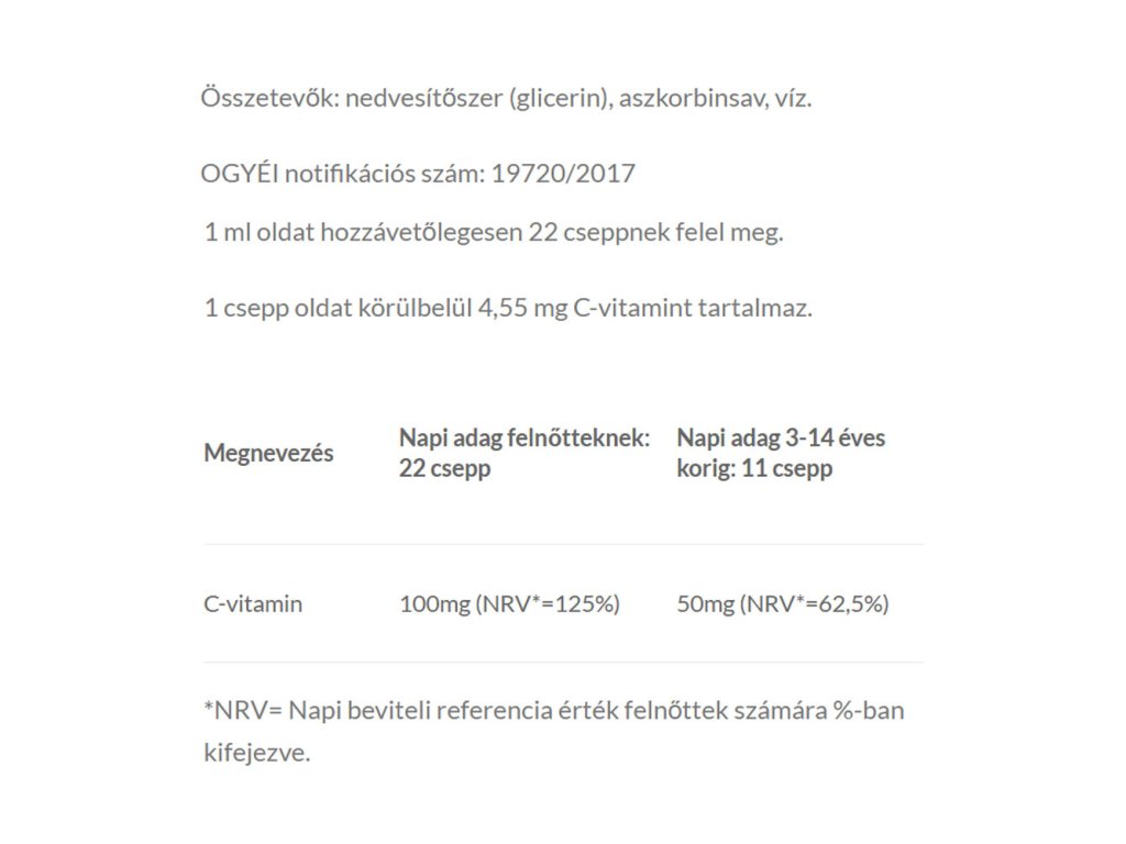 Vitamin C přispívá k normální funkci imunitního a nervového systému, ke snížení míry únavy a vyčerpání, k udržení normálních psychických funkcí, k ochraně buněk před oxidačním stresem, k normální tvorbě kolagenu a tím k udržení normálního stavu kostí, chrupavek, dásní, zubů, vína.