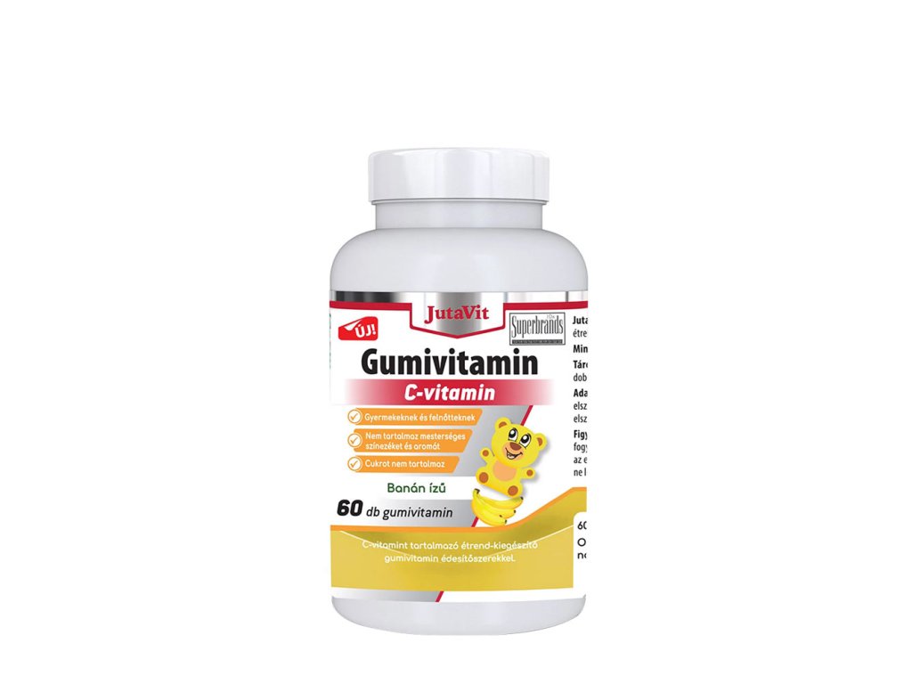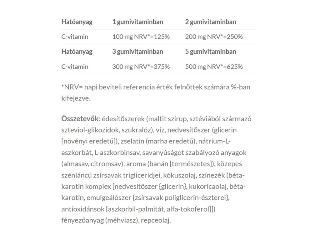 Gumový doplněk stravy s vitaminem C s příchutí banánu a sladidly.