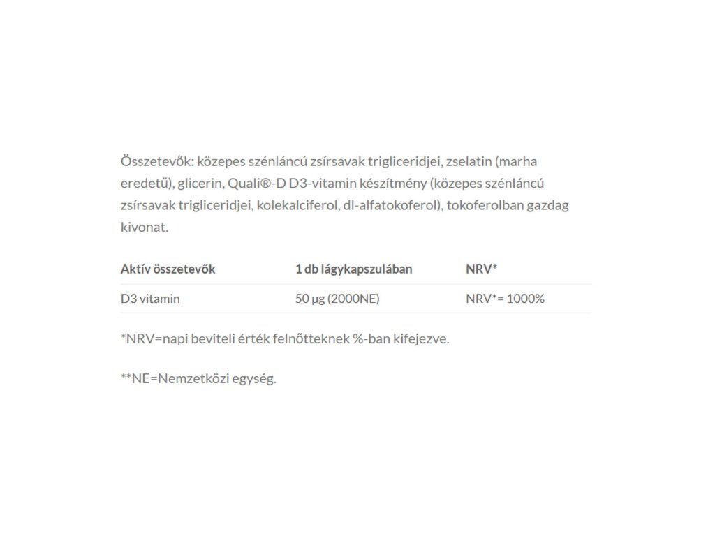 Vitamin D3 přispívá k normální funkci imunitního systému, normálnímu vstřebávání/využívání vápníku a fosforu, normální hladině vápníku v krvi, udržení zdravých kostí, zubů a svalů. Vitamin D se podílí na dělení buněk.