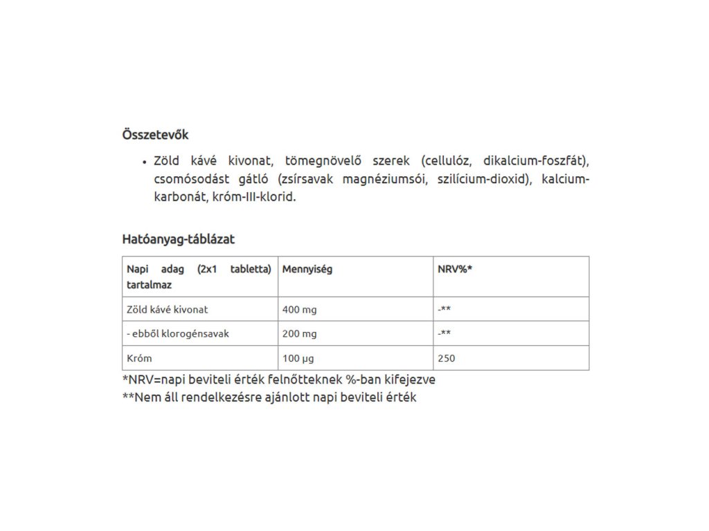- Extrakt ze zelené kávy obsahuje velké množství chlorogenových kyselin (50 %)