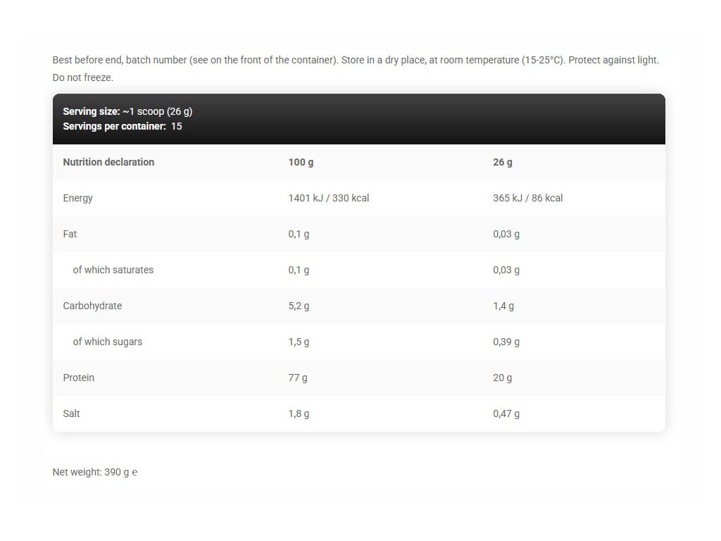 | Velikost dávky: | 26 g (1 odměrka) |