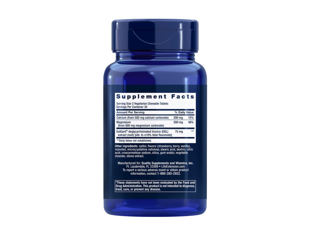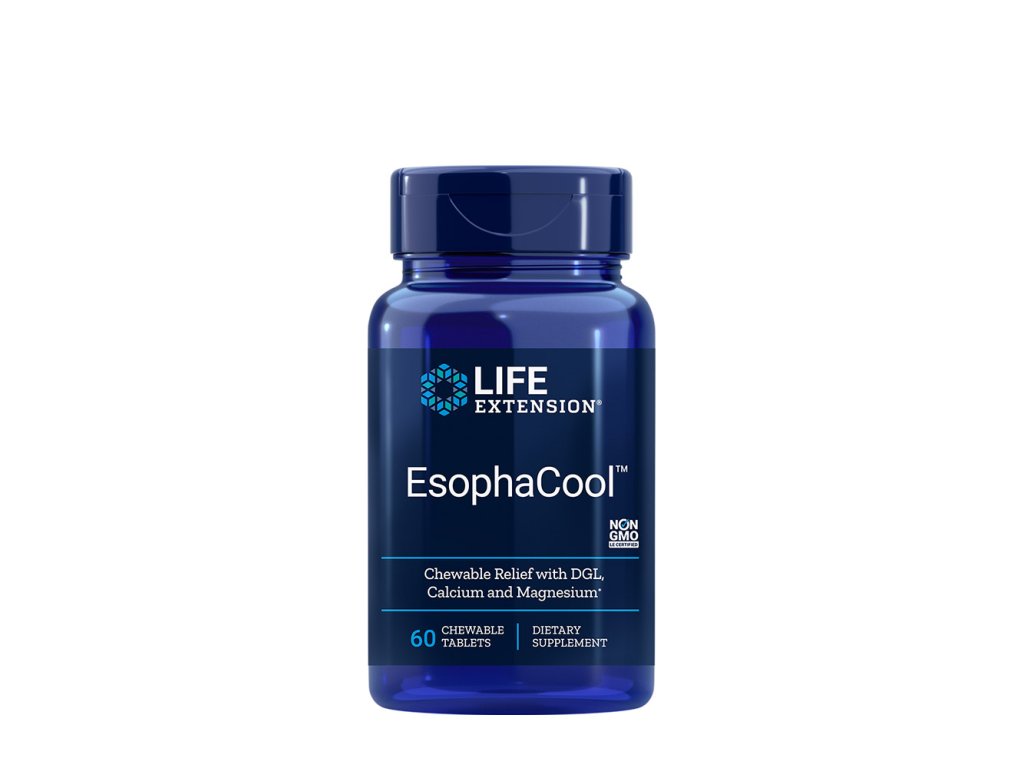 Přípravek EsophaCool obsahuje uhličitan vápenatý, který podporuje zdravou ph rovnováhu v jícnu, aniž by výrazně snižoval kyselost žaludku. Když se uhličitan vápenatý žvýká, a ne polyká, má minimální vliv na žaludeční kyselinu, která tak může nerušeně plnit svou důležitou roli při trávení. Výzkum naznačuje, že žvýkací vápník také podporuje svalový pohyb při polykání a pomáhá blokovat zpětný tok tekutiny ze žaludku. Uhličitan hořečnatý dále podporuje pohodlí jícnu a dodává tělu dodatečný hořčíkUpozornění