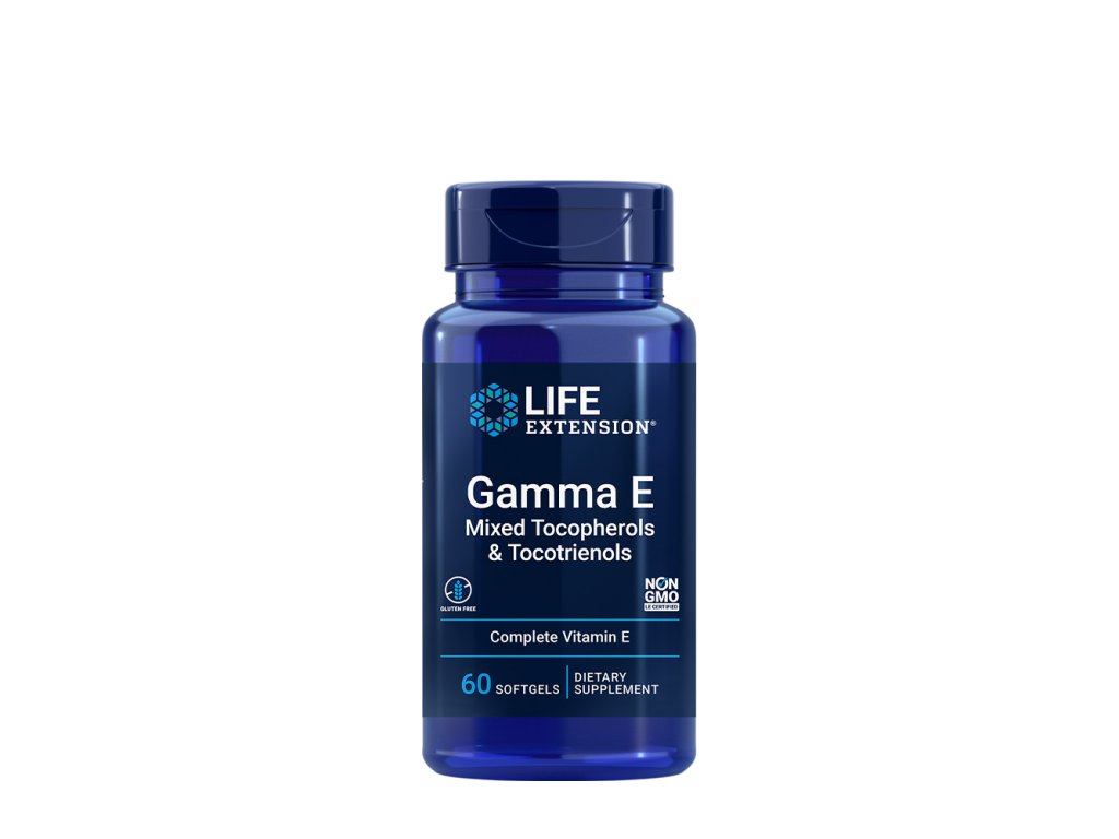 Vitamin E není jediný vitamin, ale zastřešující pojem pro osm různých antioxidantů, které jsou přítomny v různých částech rostlin. Na rozdíl od většiny doplňků stravy s vitaminem E obsahuje Gamma E Smíšené tokoferoly a tokotrienoly všech osm forem vitaminu E, což zajišťuje plný účinek antioxidační síly vitaminu E v boji proti volným radikálům. Rovněž brzdí stárnutí buněk, podporuje zdraví imunitního systému, nervové soustavy, očí, kognitivních funkcí a další.