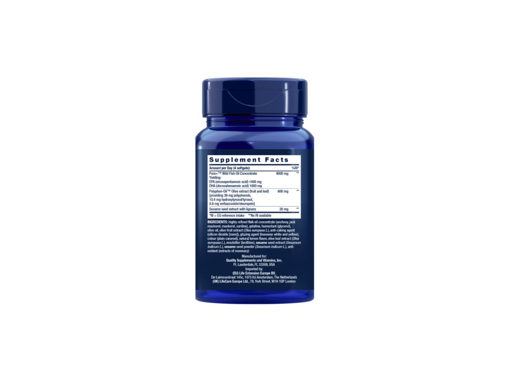Life Extension Super Omega-3 EPA/DHA kombinuje vysoce kvalitní EPA a DHA omega-3 mastné kyseliny z rybího oleje obohacené o olivové polyfenoly a sezamové lignany pro maximální zdravotní účinek. 🐟