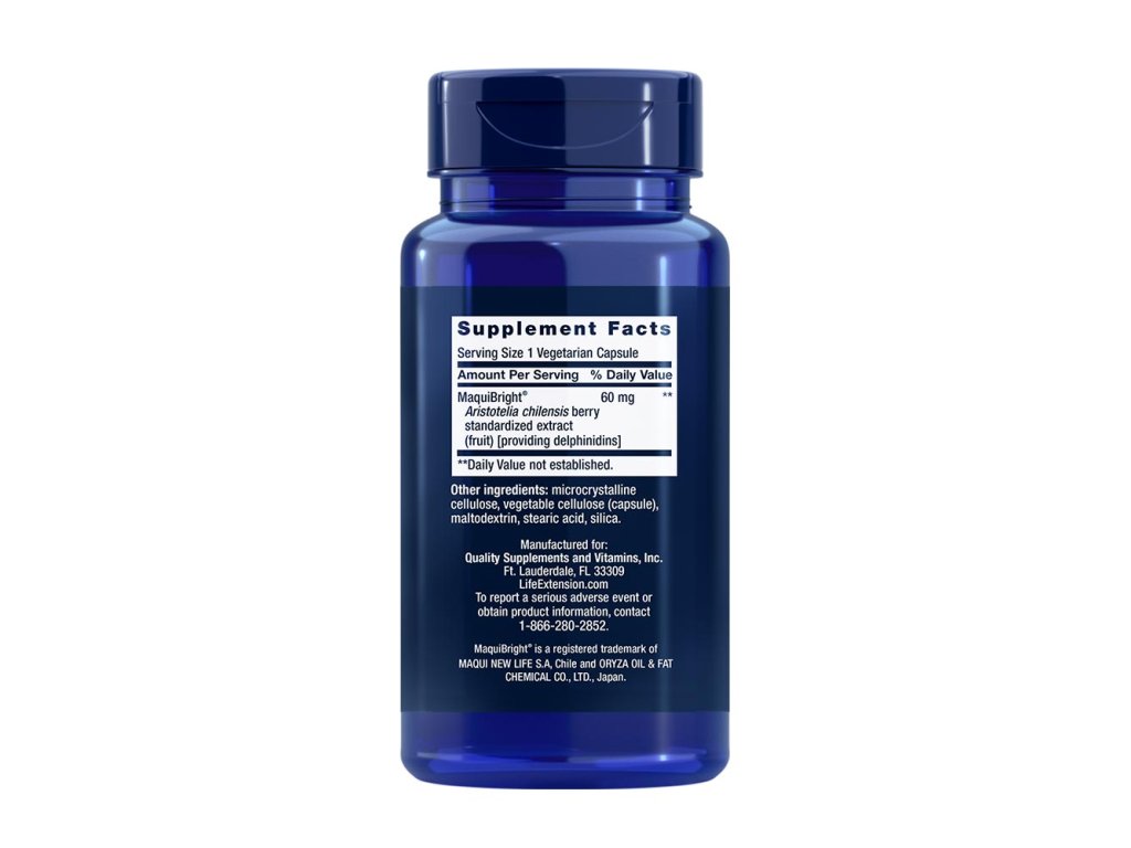 MaquiBright® podporuje zdraví očí zevnitř ven pro systémový a trvalý komfort. Společnost Life Extension vytvořila tento inovativní orální doplněk pro zdraví očí s extraktem z bobulí maqui, přičemž použila stejné dávky a zdroje jako v klinických studiích, aby zajistila maximální účinnost.