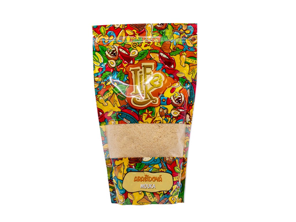 Arašídový mouka je ideální pro aktivní lidi, protože je dobrým zdrojem bílkovin. Nic jiného není přidáno během procesu výroby, takže se jedná o čistě přírodní a zdravou volbu. Vhodné pro pečení všech druhů dezertů a tam, kde chcete nahradit za klasickou mouku.Arašídy nebo burské ořechy jsou plodem roztliny podzemnice olejné – nejsou však ořechy, ale luštěniny. I přesto že jsou považovány za energeticky vydatné ( mají vysoký obsah tuku a kalorií ) mohou snižovat hladinu cholesterolu, triglyceridů, aniž by způsobily navýšení tělesné hmotnosti. Navíc skvěle udržují kontrolu nad hladinou cukru v krvi, posilujé paměť ( díky vitamínu B3 – zlepšují fungování mozku ) a obsahují antioxidanty.