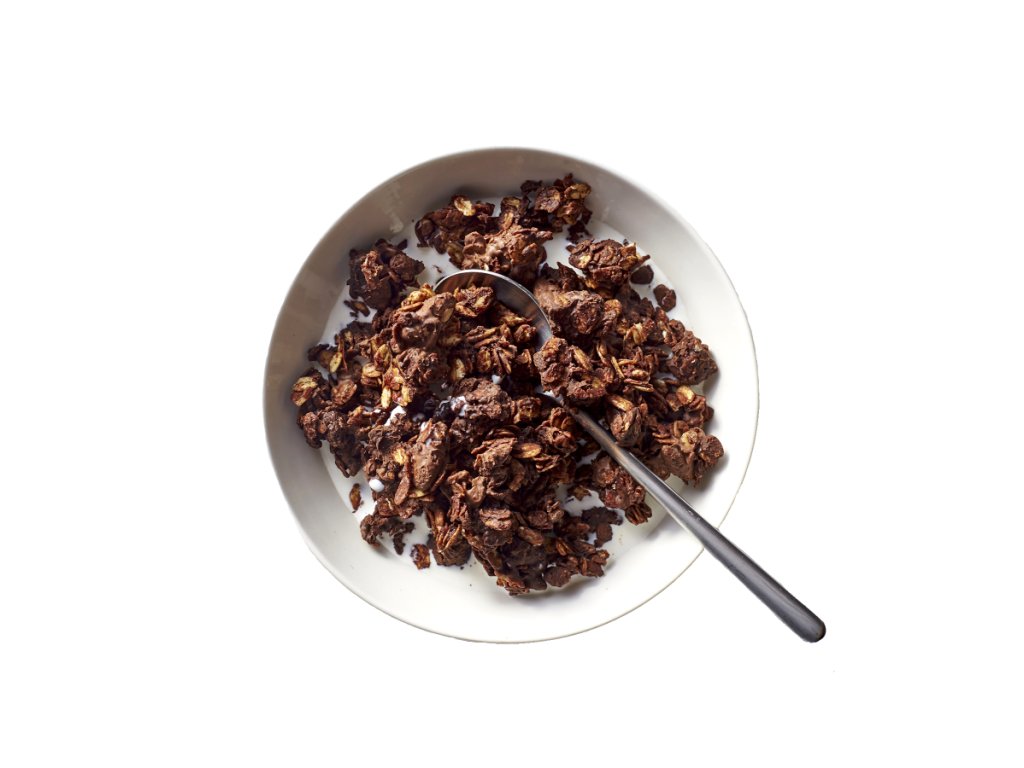 Čokoládová granola – směs bezlepkových vloček, 70% belgické čokolády, květového medu, nedoslazovaných sušených brusinek, kokosových chipsů a příjemná chuť kakaa.Granola je oproti müsli pečená! Je bezlepková a neobsahuje rafinovaný cukr, umělá aromata, barviva ani konzervanty. Skvěle chutná sama o sobě, ale můžeš si ji vychutnat i s jogurtem, mlékem a ovocem. Snadná příprava zajistí porci sacharidů, bílkovin a vlákniny nezbytných pro každný den. Poznej nový rozměr snídaňových ceremoniálů.