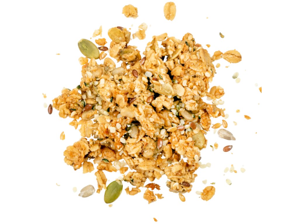Paleo granola – neboli návrat k prahistorické stravě. Směs různých druhů semínek, ořechů a brusinek.Granola je oproti müsli pečená! Je bezlepková a neobsahuje rafinovaný cukr, umělá aromata, barviva ani konzervanty. Skvěle chutná sama o sobě, ale můžeš si ji vychutnat i s jogurtem, mlékem a ovocem. Snadná příprava zajistí porci sacharidů, bílkovin a vlákniny nezbytných pro každný den. Poznej nový rozměr snídaňových ceremoniálů.
