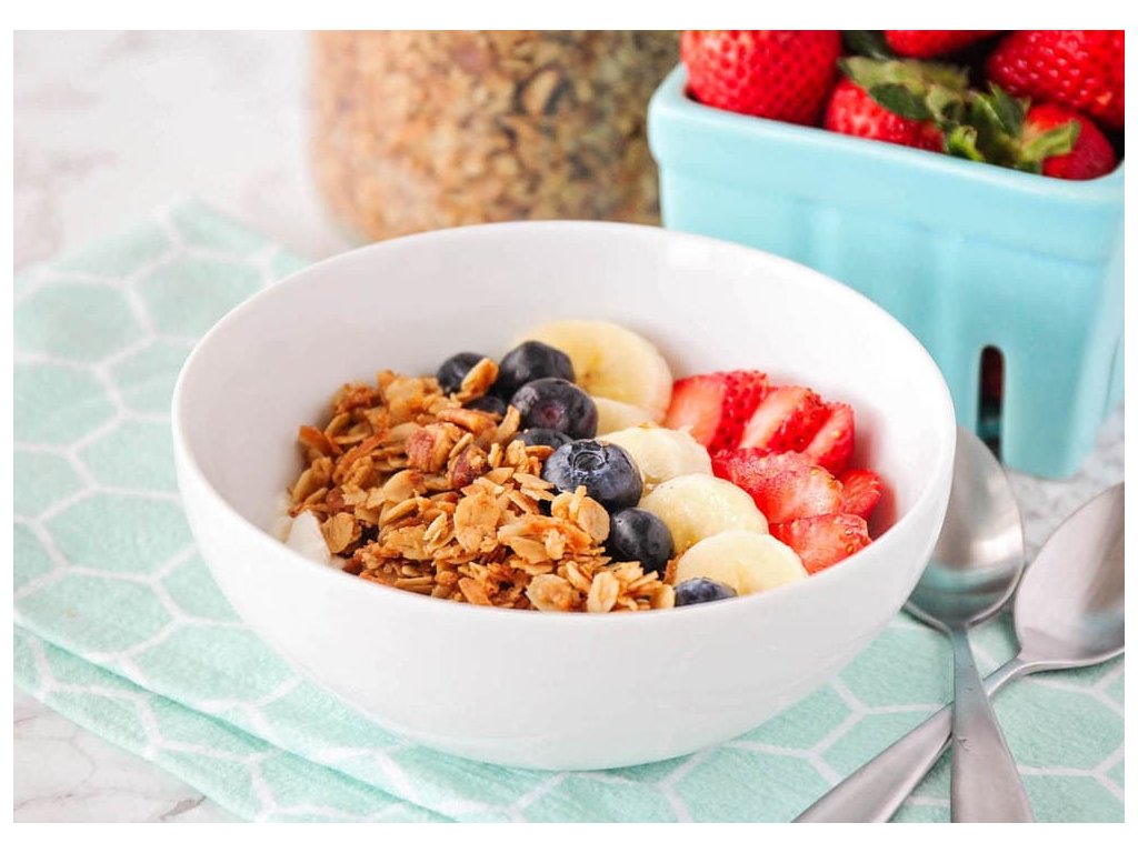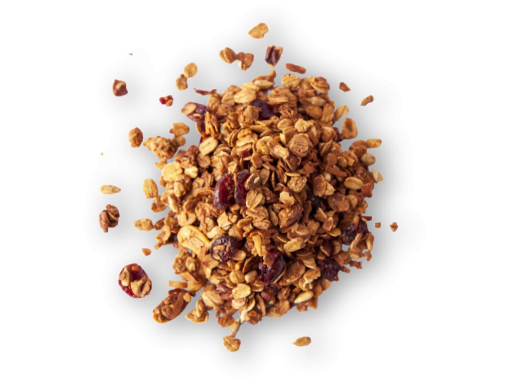 Ořechová granola – směs bezlepkových vloček, vybraných ořechů, květového medu, nedoslazovaných sušených brusinek, kokosových chipsů a příjemná chuť skořice.Granola je oproti müsli pečená! Je bezlepková a neobsahuje rafinovaný cukr a umělá aromata, barviva ani konzervanty. Skvěle chutná sama o sobě, ale můžeš si ji vychutnat i s jogurtem, mlékem a ovocem. Snadná příprava zajistí porci sacharidů, bílkovin a vlákniny nezbytných pro každný den. Poznej nový rozměr snídaňových ceremoniálů.