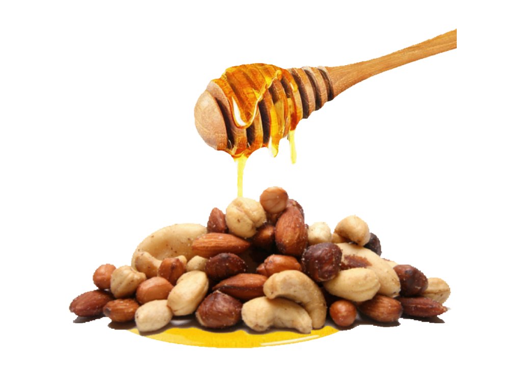 60 % směs ořechů (lískové ořechy, mandle natural, kešu natural, kokos chips, pekanové ořechy) , 22 % med, 15 % dýňové semínko, 3 % skořice, himalájská sůl.