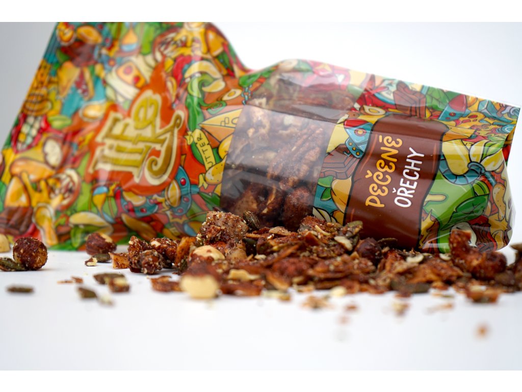 Směs pečlivě vybraných ořechů se skořicí a medem.V balení najdete lískové ořechy, mandle natural, kešu, kokosové chipsy a pekany. Ořechy jsou pečlivě opraženy a promíchány s medem, který spojí všechny chutě dohromady. Skořice dodá celé směsi vánoční vůni a dýňová semínka krásně zakřupou. Vše je jemně doladěno himalájskou solí pro intenzivnější chuť.