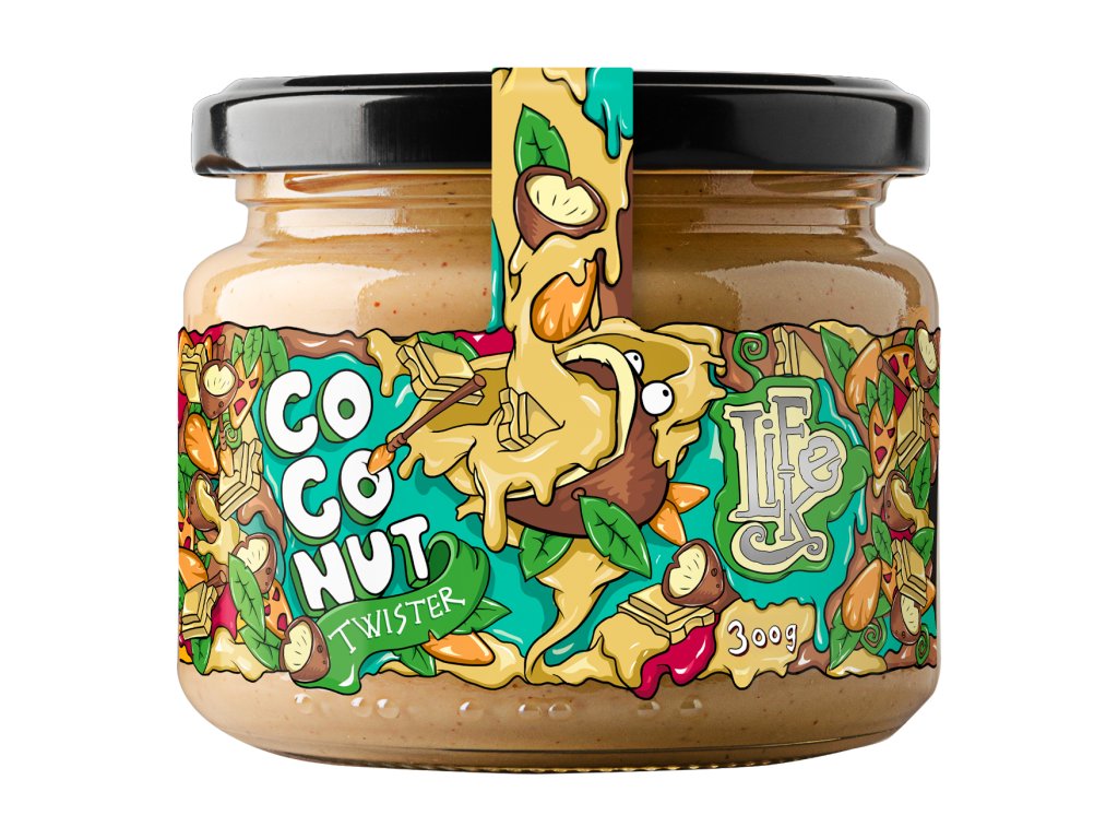 Složení: 40 % kokos, 30 % loupané mandle, 20 % bílá čokoláda (cukr, kakaové máslo, sušené mléko, sojový lecitin, vanilka Bourbon), 10 % sušenky (cukr, rýžová mouka, sušené mléko, slunečnicový lecitin, šelak, glukozový sirup)