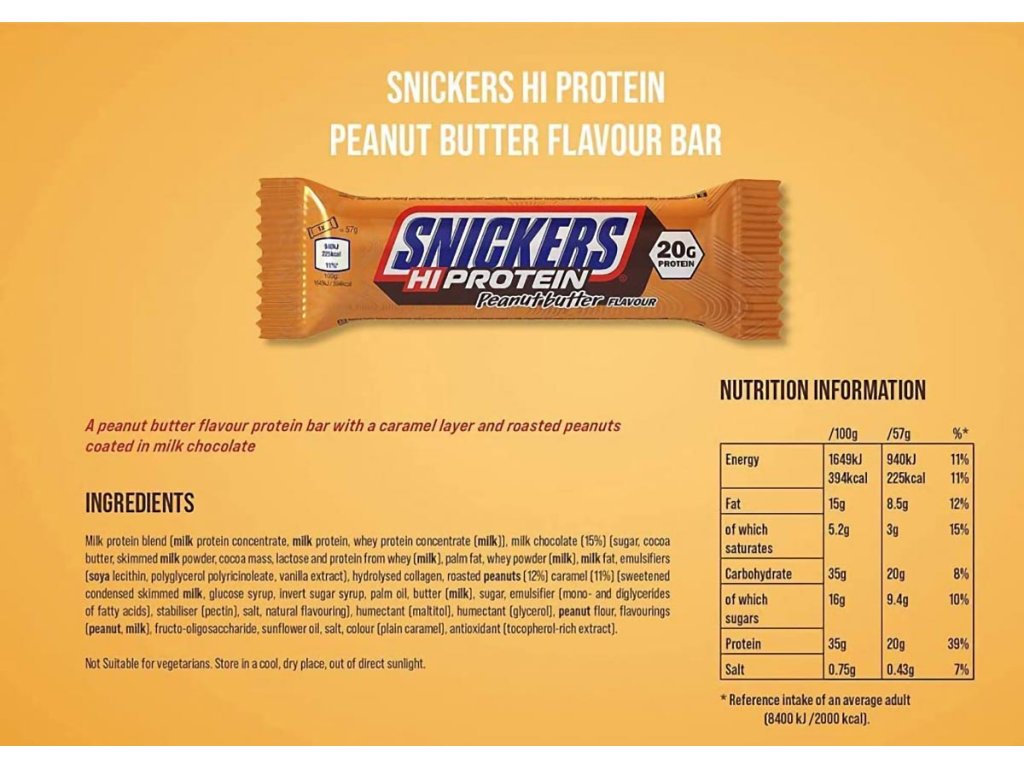 Více arašídů ve vašich oblíbených SNICKERS? Nyní si je můžete dopřát v proteinové tyčince SNICKERS, která obsahuje 20 g bílkovin, ale jen 230 kalorií na tyčinku. Tyto tyčinky se snadno vejdou do každé sportovní tašky, batohu nebo kabelky. Pokud hledáte nové a chutné proteiny, tyto tyčinky si zamilujete! A nyní s omezenou příchutí arašídového másla!