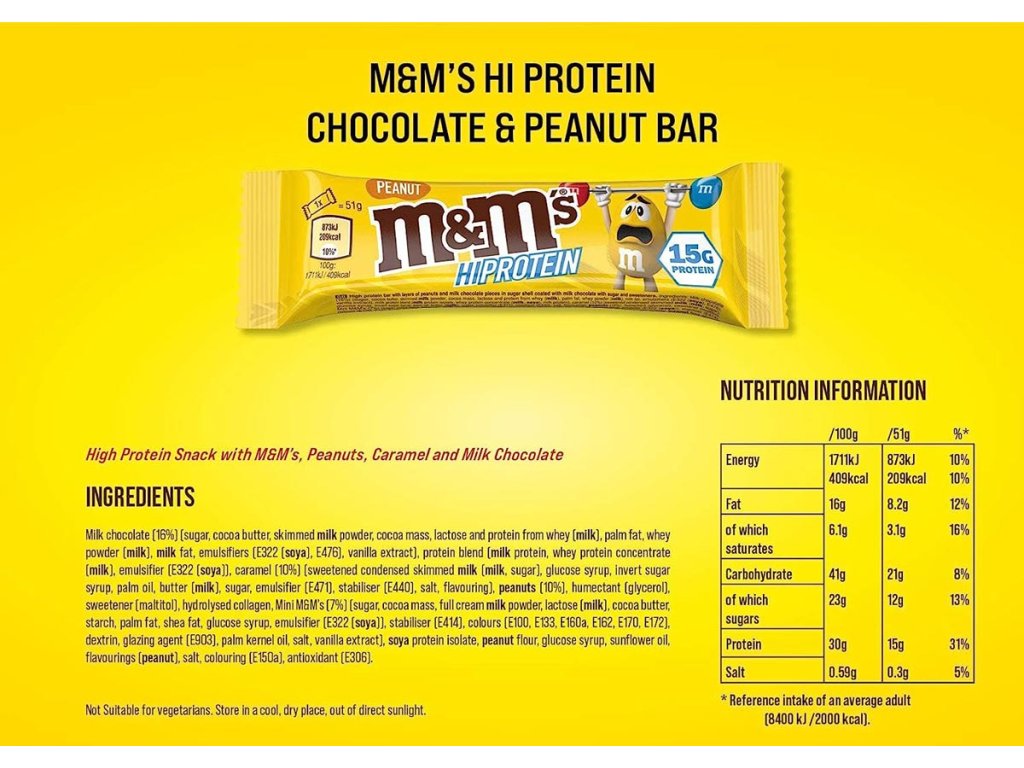 Na tohle jste všichni čekali! Hi-Proteinové tyčinky M&M's od společnosti Mars jsou na světě! Tohle musí být ten nejchutnější způsob, jak si dopřát bílkoviny bez cukru. Senzační svačina po tréninku s 15 g bílkovin na porci a pouhými 192 kcal.