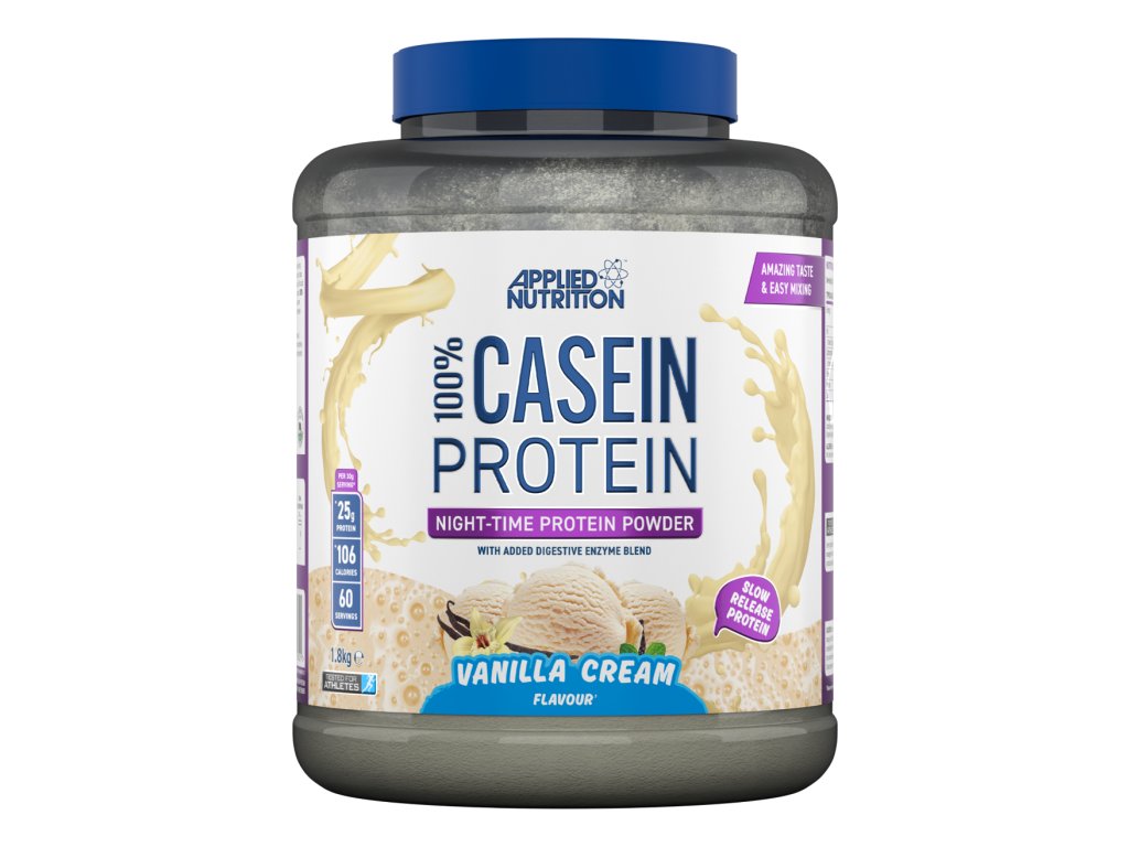 - noční protein s pomalejším a delším vstřebáváním (ve srovnání se syrovátkovými proteiny)