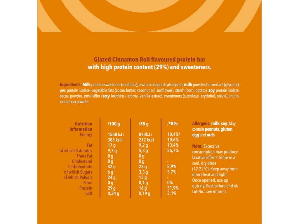 Sladká, pikantní a tak uspokojivá! S 16 g bílkovin je tato proteinová tyčinka s polevou a skořicovým šnekem vaším denním potěšením bez výčitek.Upozornění