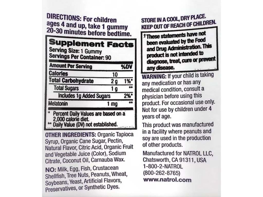 Příběh na dobrou noc. Vaše dítě má však stále problémy s usínáním. Je čas na Natrol Kids Melatonin Gummies, 1 mg melatoninu ve skvěle chutnajících gumových bonbonech s příchutí lesních plodů a dalších přírodních látek.