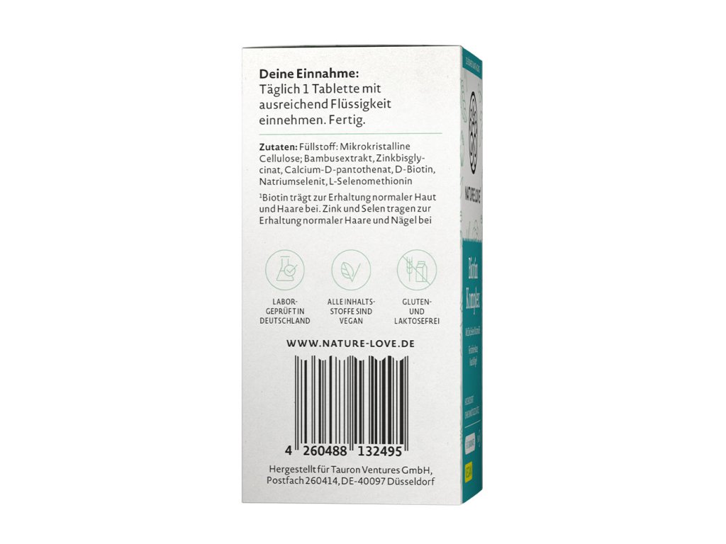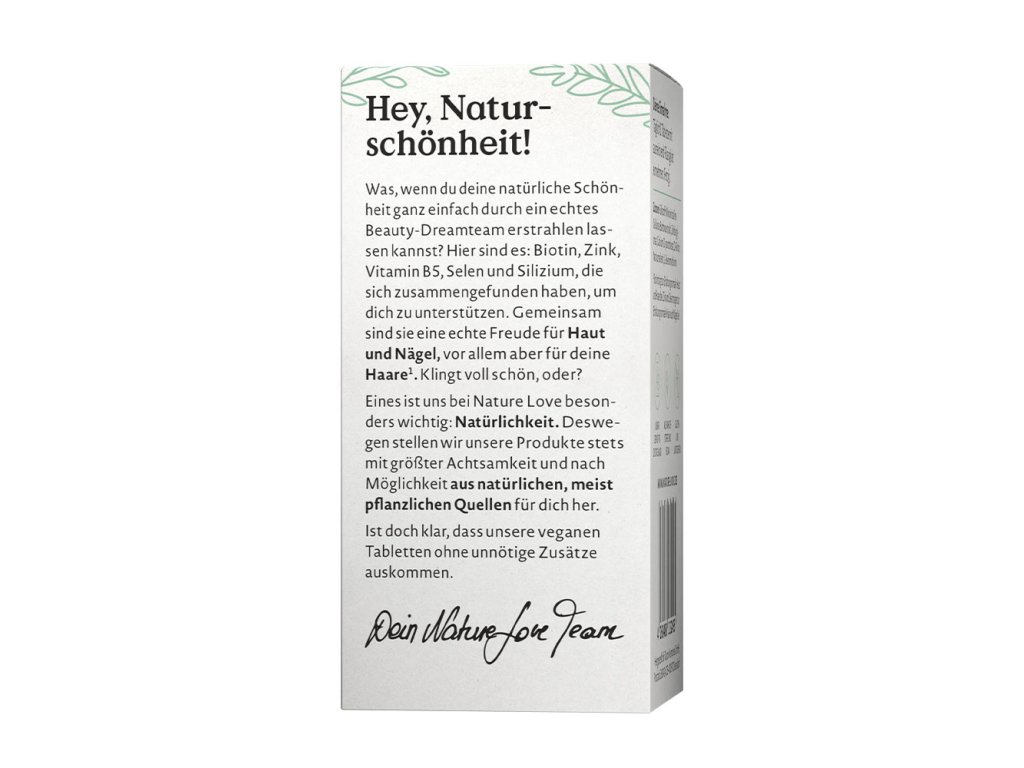 Co kdybyste mohli jednoduše nechat svou přirozenou krásu zazářit zevnitř? S kombinovanou silou biotinu, zinku, vitamínu B5, selenu a křemíku. Skutečný beauty dream team, sestavený zde pro vás. A opravdová lahůdka pro vaši pokožku a nehty, ale především pro vaše vlasy. Zní to naprosto úžasně, že?- S 10 000 µg biotinu, 7,5 mg zinku, 9 mg kyseliny pantothenové (vitamín B5), 55 µg selenu a 35 mg křemíku v denní dávce (1 tableta)