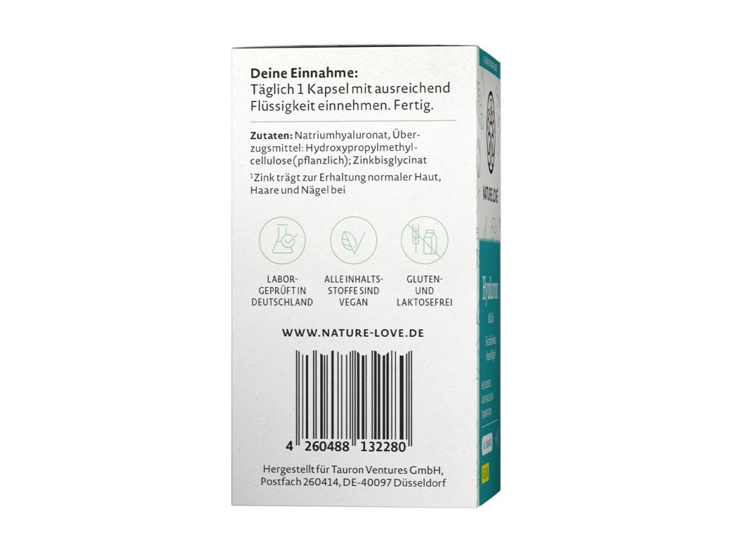 Nature Love Hyaluron kyselina hyaluronová + Zinek 60 kapslí