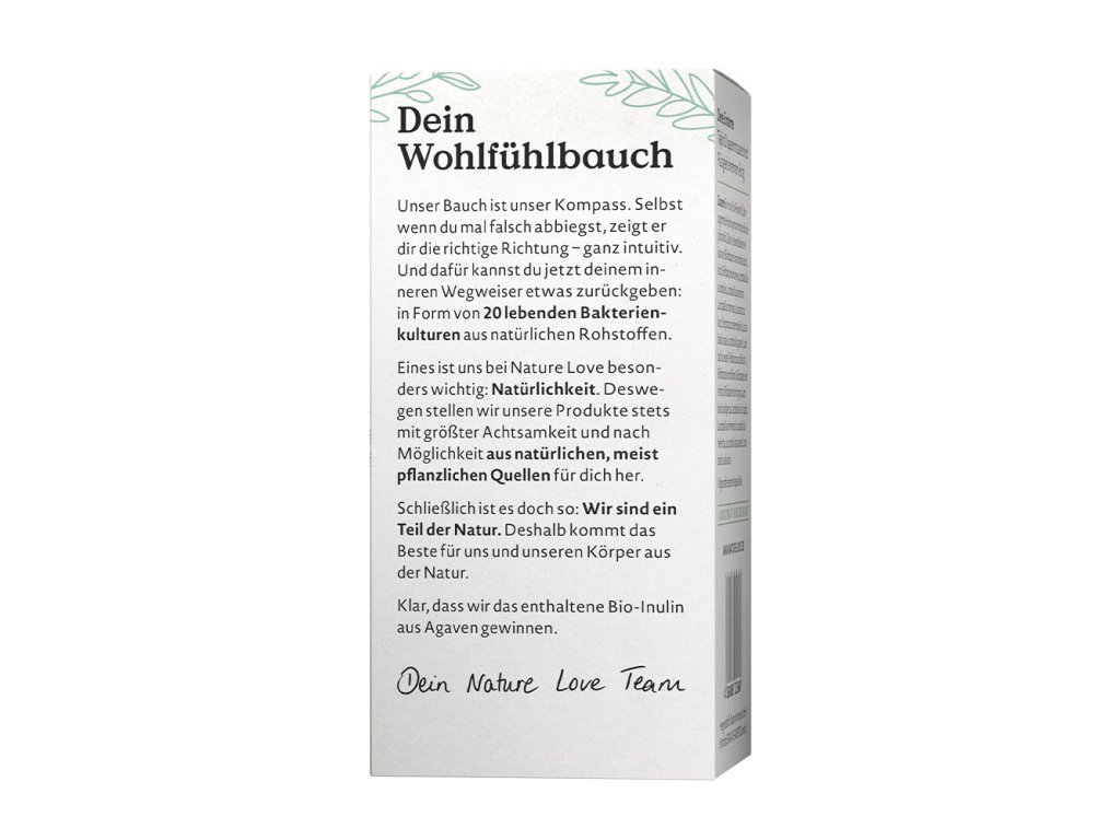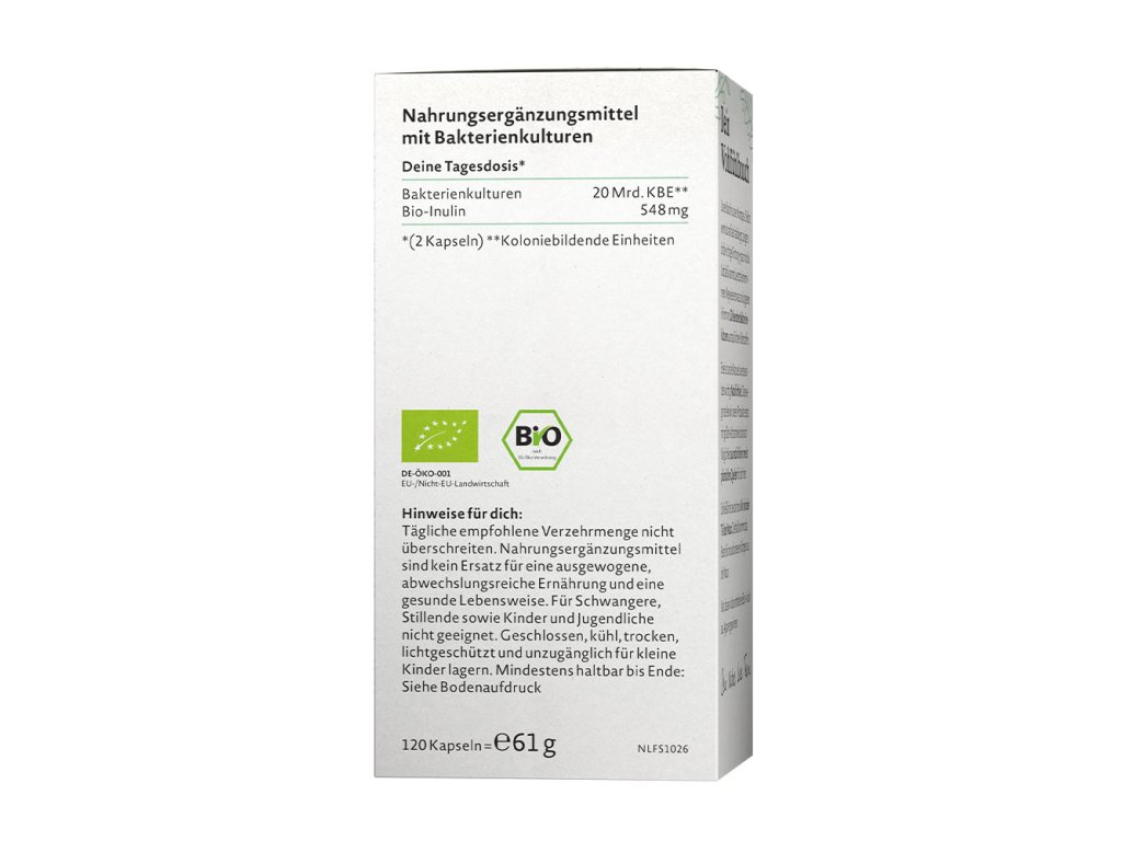 Naše břicho je náš kompas. I když se vydáte špatným směrem, ukáže vám tu správnou cestu – zcela intuitivně. A teď můžete svému vnitřnímu průvodci něco vrátit: s našimi 20 živými bakteriálními kulturami z přírodních surovin a bio inulinem z kontrolovaného ekologického zemědělství.Upozornění