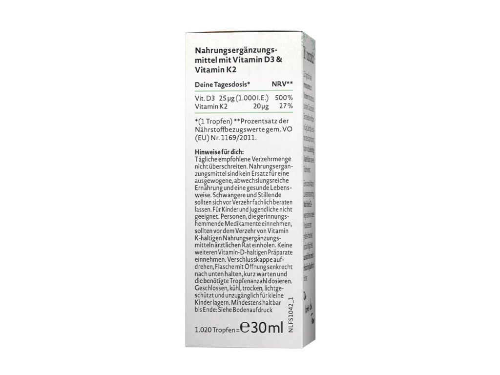 Vitamin D a vitamin K přispívají k udržení normálního stavu kostí. Vitamin D přispívá k normální funkci imunitního systému, k udržení normální funkce svalů a k udržení normálního stavu zubů.Upozornění