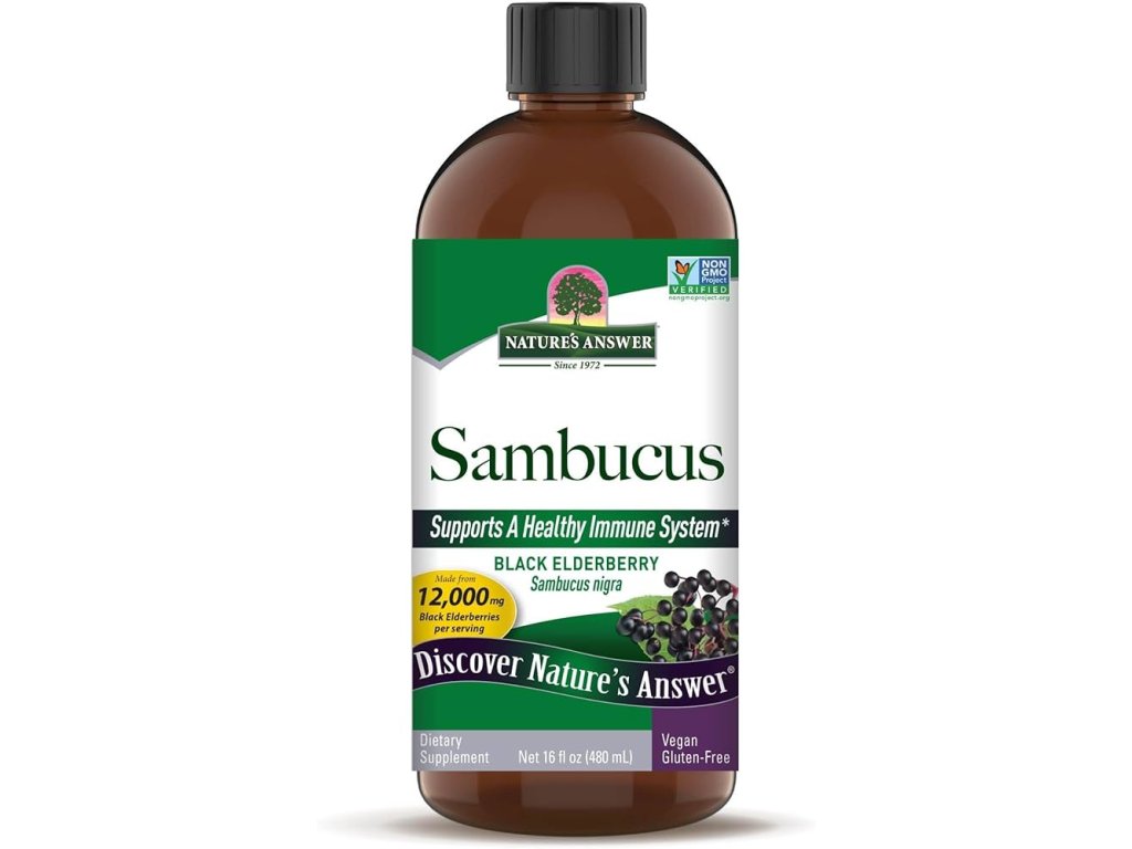 Sambucus nigra (černý bez) patří mezi nejznámější tradiční rostlinné suroviny používané po generace. Tento tekutý doplněk stravy od Nature’s Answer® je vyroben z 12 000 mg černých bezinek v každé dávce a podporuje zdravý imunitní systém přirozenou cestou.