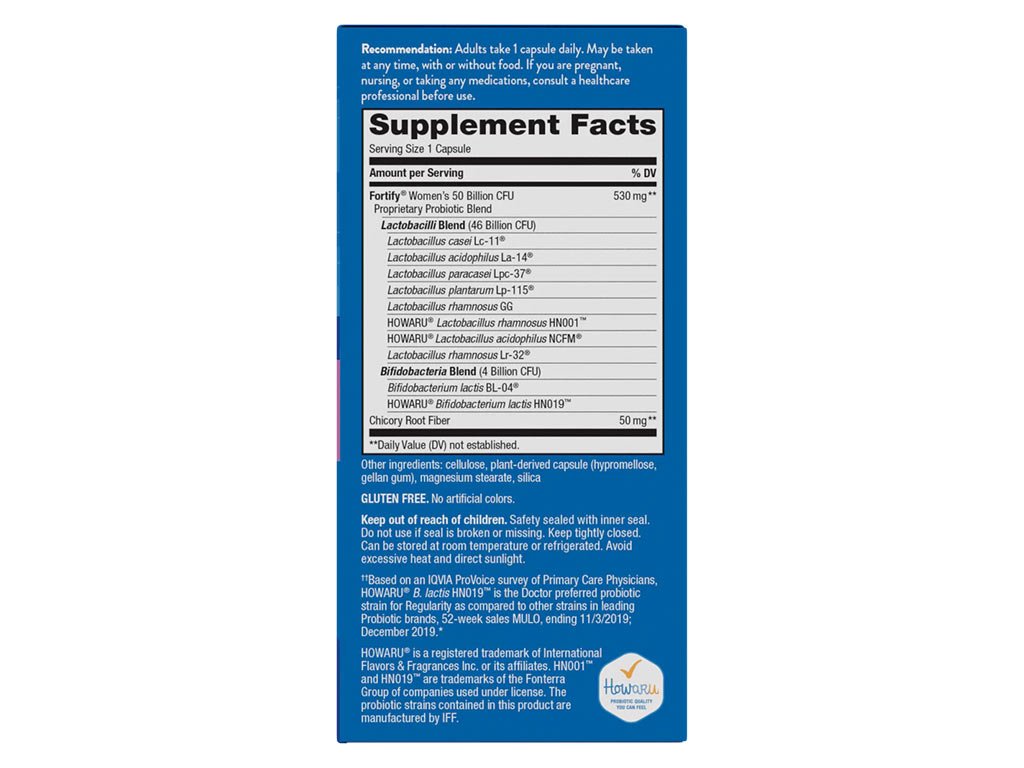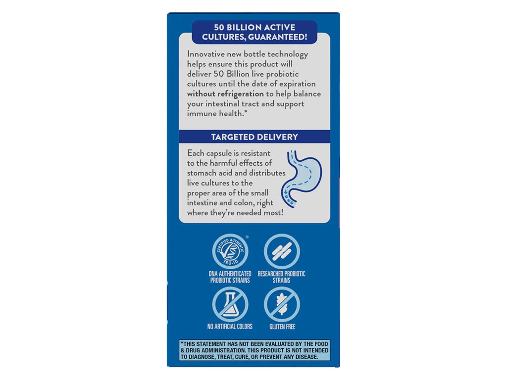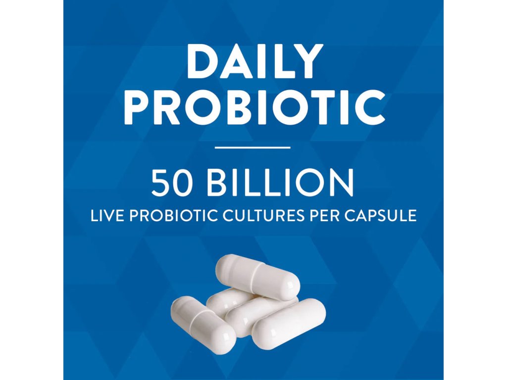 Chcete-li získat mimořádně silné probiotikum pro váš mimořádně náročný životní styl, který zahrnuje rodinu, práci a čas na péči o sebe, zvolte si Women's 50 Billion. Tento účinnější denní probiotický přípravek je speciálně vyvinutý pro ženy a obsahuje různé probiotické kmeny, které pomáhají podporovat trávení, imunitní systém a zdraví žen. Každá dávka obsahuje 50 miliard živých probiotických kultur a prebiotika, která jsou zdrojem potravy pro dobré bakterie. Není nutné je chladit, takže je můžete snadno vzít s sebou na cesty.Upozornění