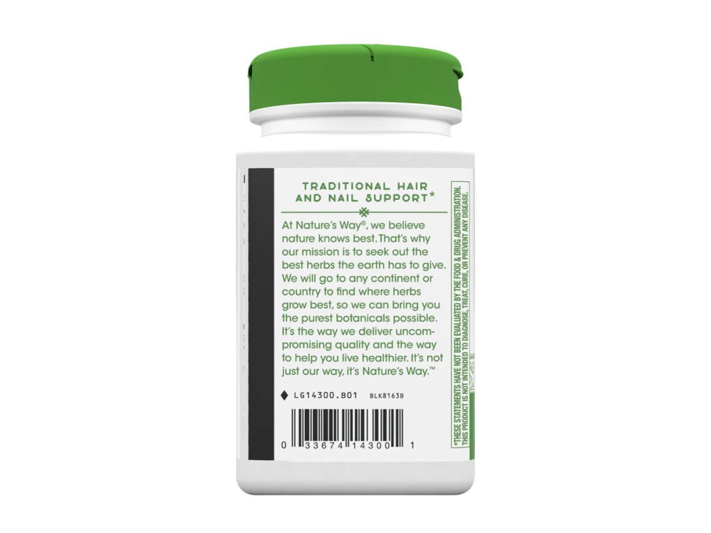 Podívejte se do přírody, kde najdete žádoucí kosmetické účinky. Přeslička rolní, známá také jako láhvový kartáč, je trvalka, která se používala jako léčivý prostředek již ve starověkém Řecku a Římě a je tak pojmenována díky svým zpeřeným listům, které vypadají jako koňská hříva. Přeslička rolní tradičně podporuje zdravé vlasy a nehty. Nature's Way Horsetail obsahuje 440 mg přesličky rolní v jedné dávce pro tradiční podporu nehtů a vlasů.