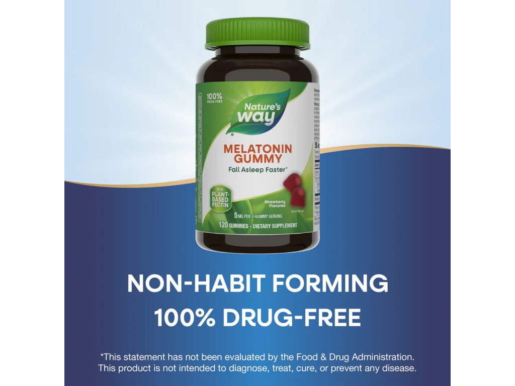 Dobrý spánek znamená lepší zítřek. Nature's Way Melatonin Gummies pro dospělé vám pomohou rychleji usnout díky doplnění melatoninu, hormonu, který se nachází ve vašem těle. Pomáhají podporovat kvalitu spánku a zdravý spánkový cyklus, abyste mohli během dne lépe fungovat a ráno přivítat odpočatí. Melatonin Gummies mají lahodnou jahodovou příchuť a jsou vyrobeny z pektinu, nikoli ze želatiny. Když se vám občas zdá, že spánek není na dosah, vyzkoušejte Melatonin Gummies a nechte se unášet do klidných snů.