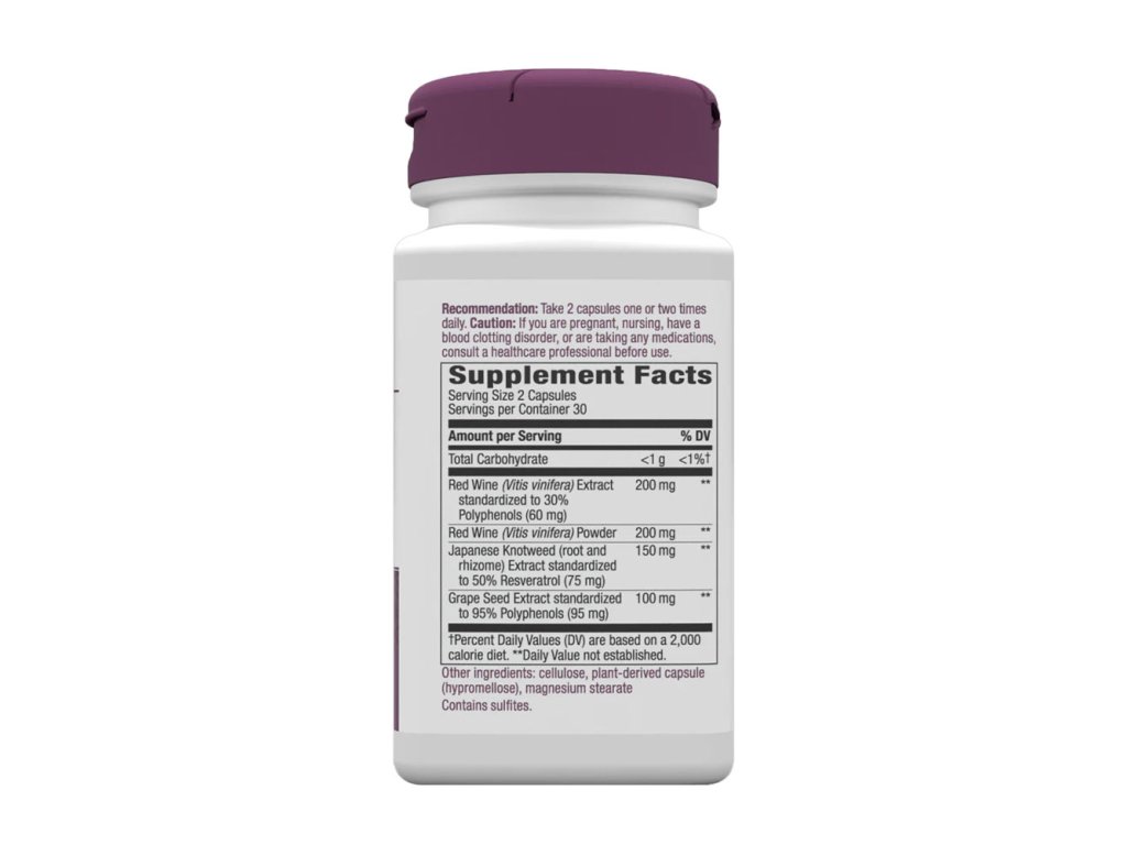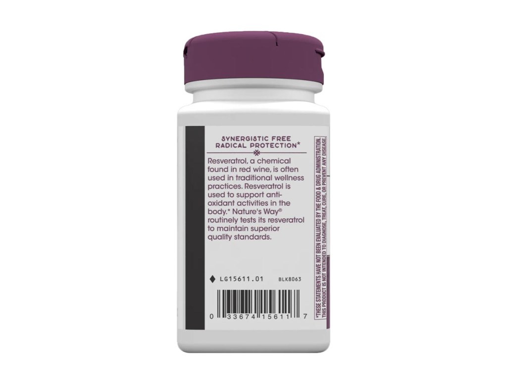 Resveratrol, chemická látka obsažená v červeném víně, se často používá v tradičních wellness postupech. Resveratrol se používá k podpoře antioxidační činnosti v těle. Společnost Nature's Way® rutinně testuje svůj resveratrol, aby zachovala nejvyšší standardy kvality.