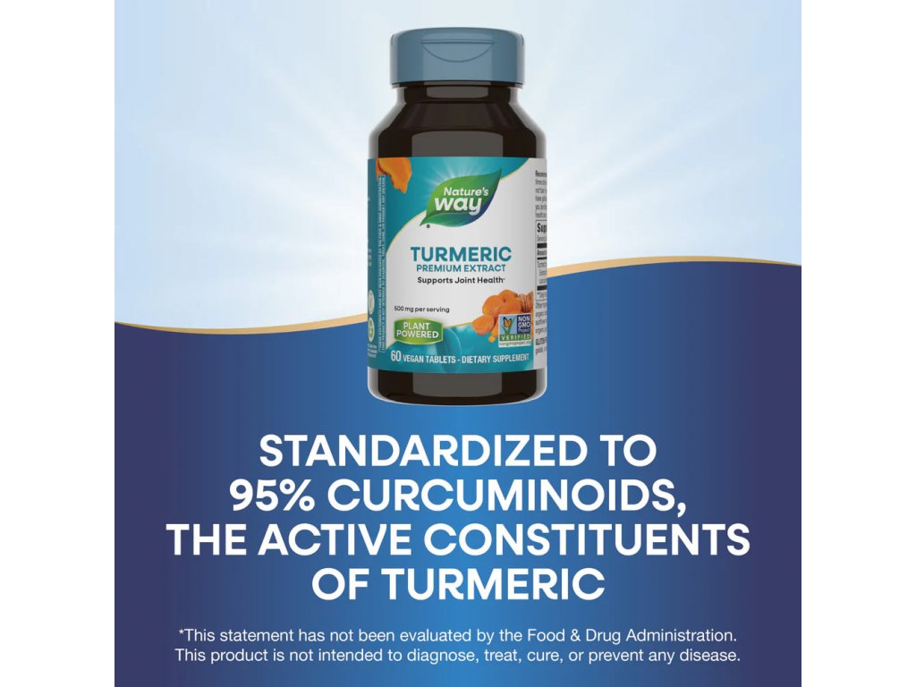 Zářivě oranžový kořen kurkumy se v ájurvédě používá již tisíce let a od té doby se stal jednou z nejoblíbenějších bylin. Kurkuma roste nejčastěji v Indii a je příbuzná kořenu zázvoru. Aktivní složky kurkumy se nazývají kurkuminoidy, které podporují zdraví kloubů. Nature's Way Kurkuma Premium Extract je standardizována na 95 % kurkuminoidů.