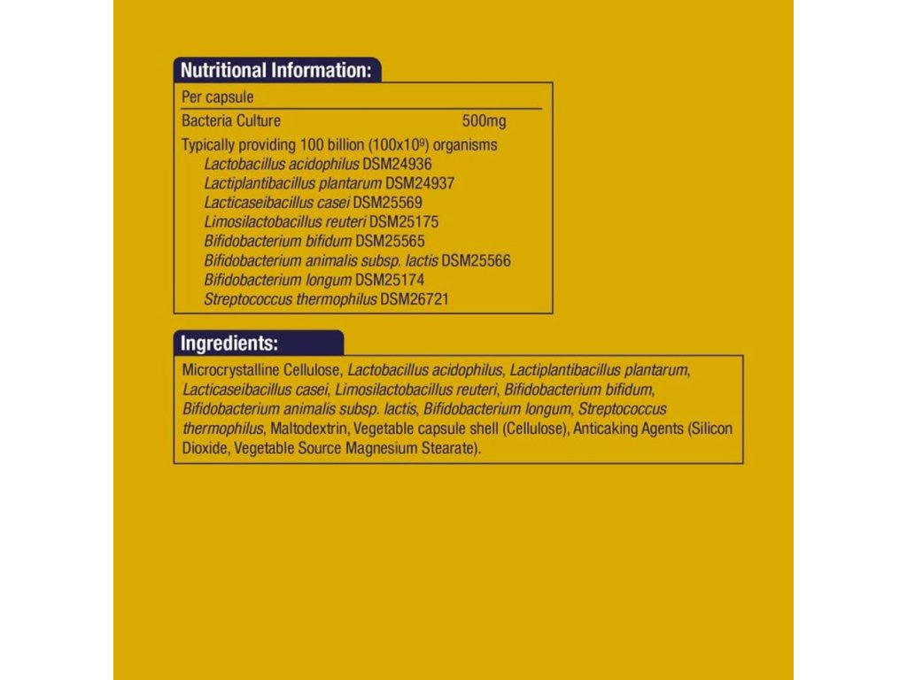 Pro-100 ULTRA je pečlivě vybraná směs osmi bakterií: Lactobacillus acidophilus, Lacticaseibacillus casei, Limosilactobacillus reuteri, Lactiplantibacillus plantarum, Streptococcus thermophilus, Bifidobacteria lactis, Bifidobacteria longum a Bifidobacteria bifidum