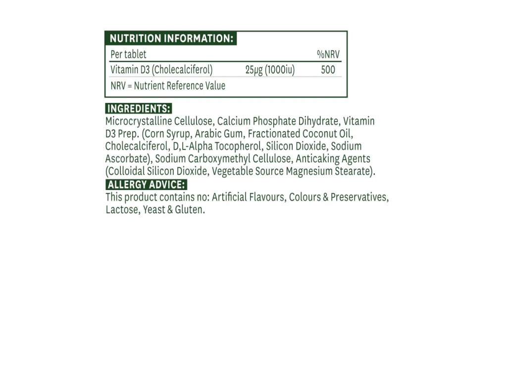 Natures Aid Vitamin D 1000iu byl pečlivě sestaven našimi odborníky tak, aby poskytoval 1000iu vitaminu D v každé tabletě. Mnoho produktů s vitamínem D pochází z lanolinu (ovčí vlny), takže nejsou vhodné pro vegany, ale náš vitamín D3 z lišejníku je vhodný pro vegany. Můžete si také být jisti, že náš vitamin D neobsahuje lepek, kvasnice, mléčné výrobky, sóju ani ořechy, takže je ideální pro všechny, kteří mají dietní omezení