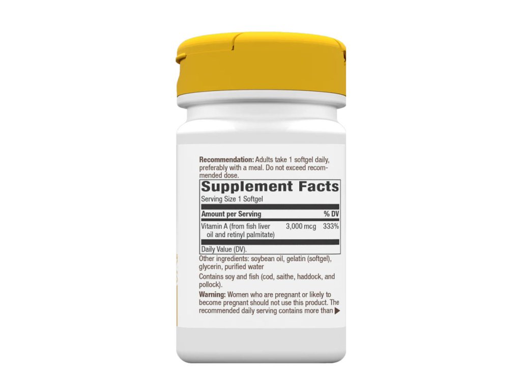 Ženy, které jsou těhotné nebo mohou otěhotnět, by tento přípravek neměly používat. Doporučená denní dávka obsahuje 3 000 mcg vitaminu A z retinolu, o němž je známo, že ve vysokém množství způsobuje vrozené vady.Dávkování