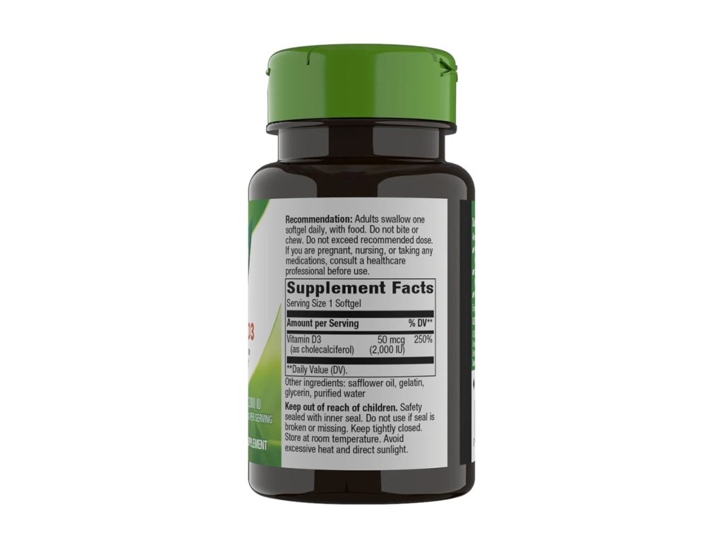 Vitamín D3 ve formě cholekalciferolu je aktivní a preferovanou formou vitamínu D, a proto jsme ho použili v těchto měkkých gelech. Zvyšuje vstřebávání vápníku pro silné kosti a zuby a zároveň podporuje správnou funkci imunitního systému. Softgely obsahují 50 mcg (2 000 IU) vitaminu D3 v jedné dávce.