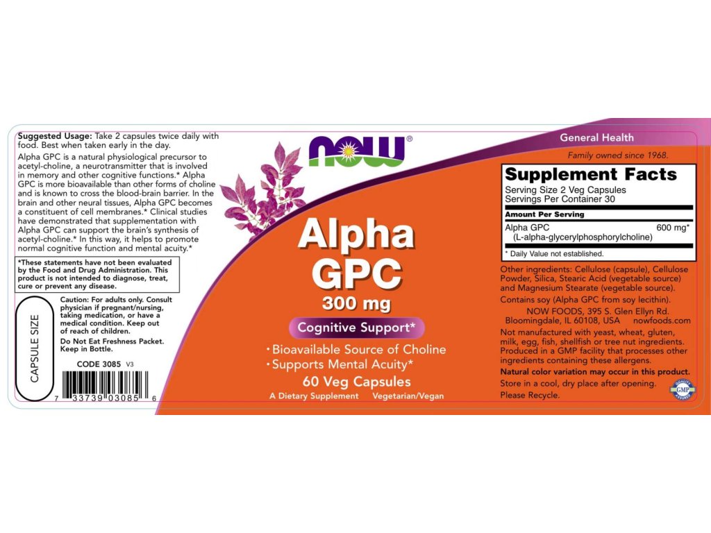 Now Foods Alpha GPC 300 mg 60 rostlinných kapslí