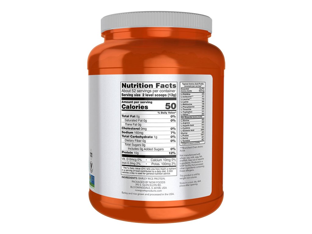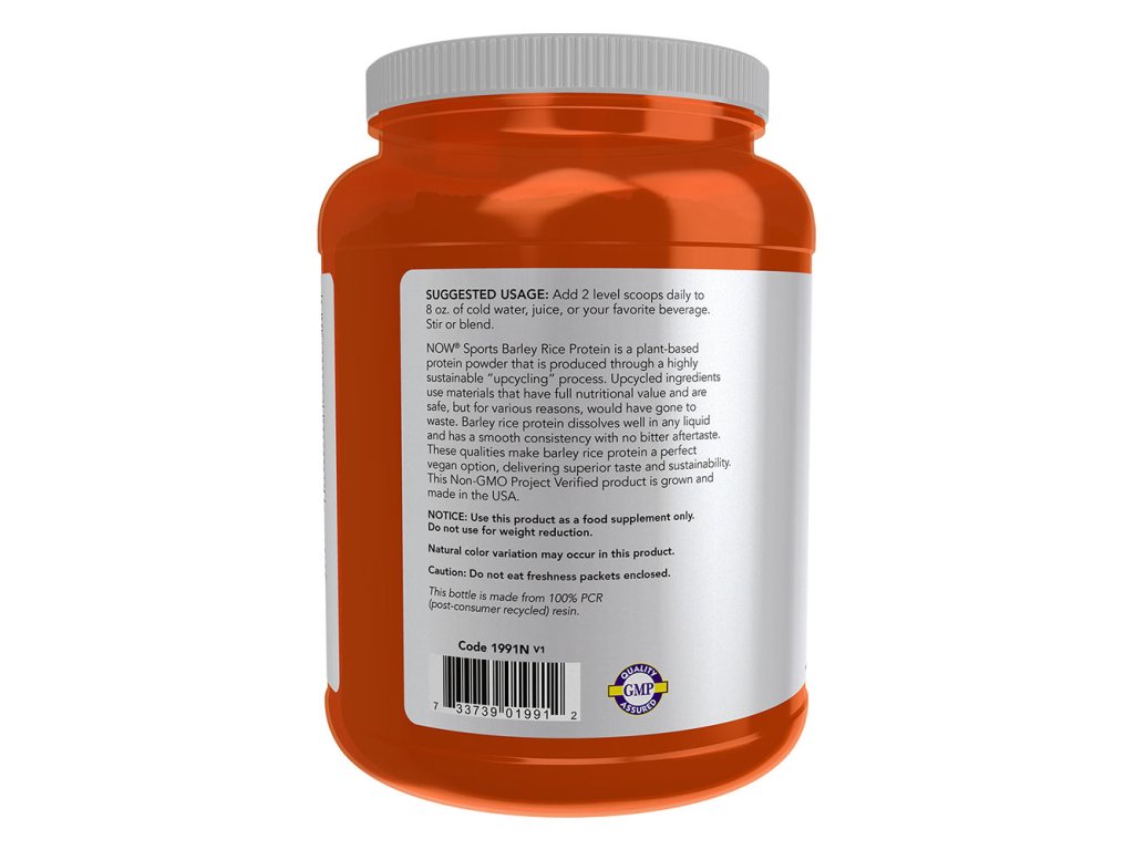 NOW® Sports Barley Rice Protein je rostlinný proteinový prášek, který se vyrábí vysoce udržitelným procesem "upcyklace". Upcyklované suroviny využívají materiály, které mají plnou výživovou hodnotu a jsou bezpečné, ale z různých důvodů by přišly vniveč. Ječný rýžový protein se dobře rozpouští v jakékoli tekutině a má hladkou konzistenci bez hořké příchuti. Díky těmto vlastnostem je protein z ječmene a rýže ideální veganskou variantou, která přináší vynikající chuť a udržitelnost. Tento produkt s certifikací Non-GMO Project je vypěstován a vyroben v USA.