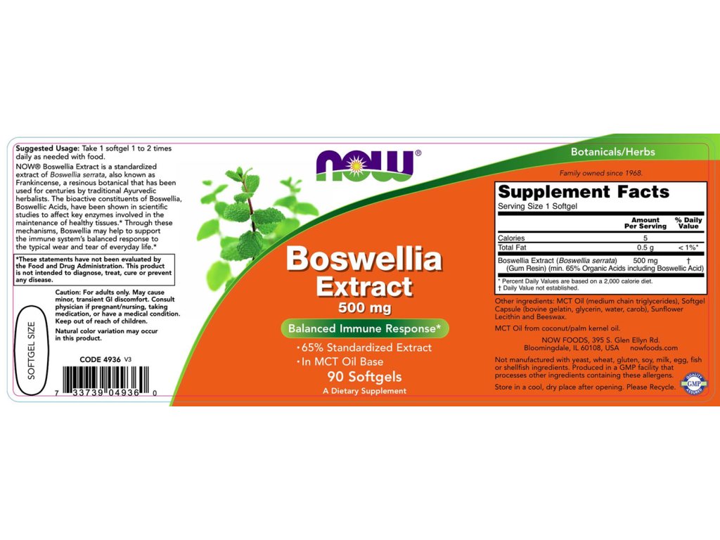 Now Foods Boswellia Extrakt 500 mg 90 softgelových kapslí