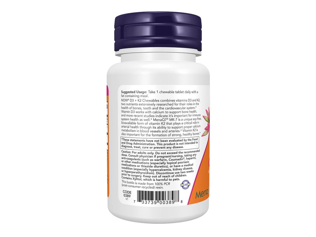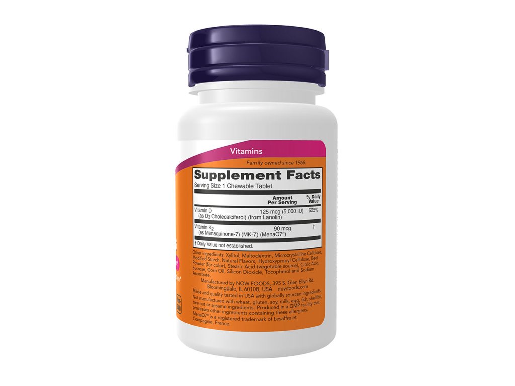 Now Foods D-3 + K-2 (MK-7) 90 chewables