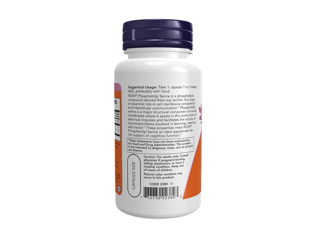 NOW® Phosphatidyl Serine je fosfolipidová sloučenina získaná ze sójového lecitinu, která hraje zásadní roli ve složení buněčných membrán a mezibuněčné komunikaci. Fosfatidylserin je hlavní strukturní složkou nervových membrán, kde pomáhá při vedení elektrických impulsů a usnadňuje činnost neurotransmiterů, které se podílejí na učení, paměti a náladě. Díky těmto vlastnostem je NOW® Phosphatidyl Serine ideálním doplňkem pro podporu kognitivních funkcí
