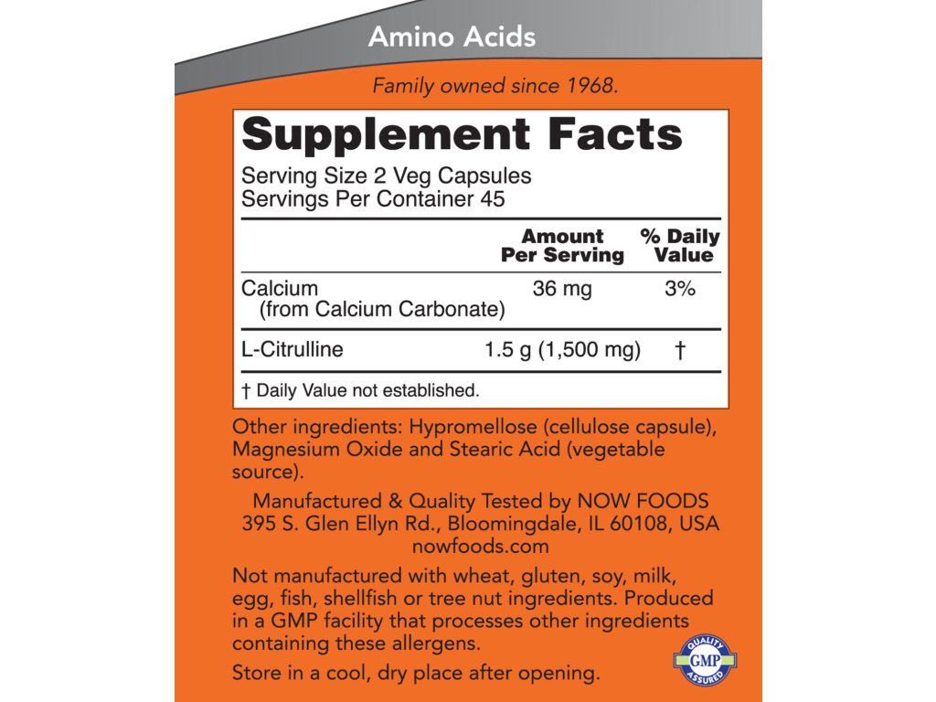 Now Foods L-Citrulin 750 mg 90 rostlinných kapslí