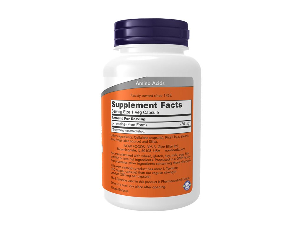 Now Foods L-Tyrosine Extra Strength 750 mg 90 rostlinných kapslí