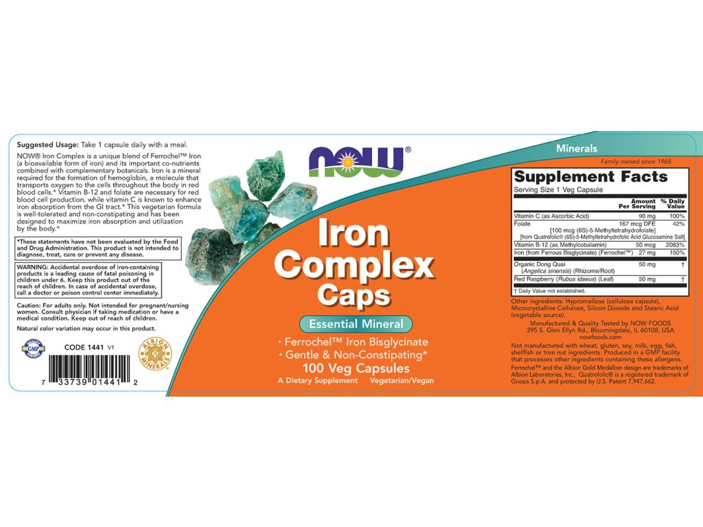 Now Foods NOW Iron Complex Caps železo 100 rostlinných kapslí