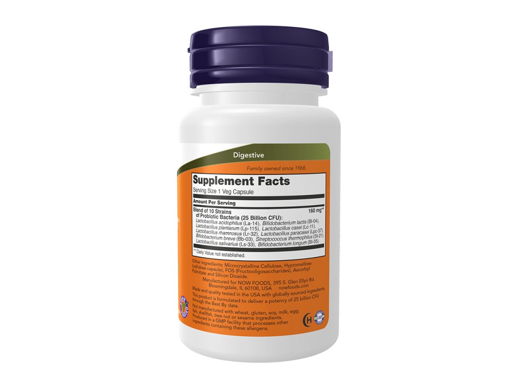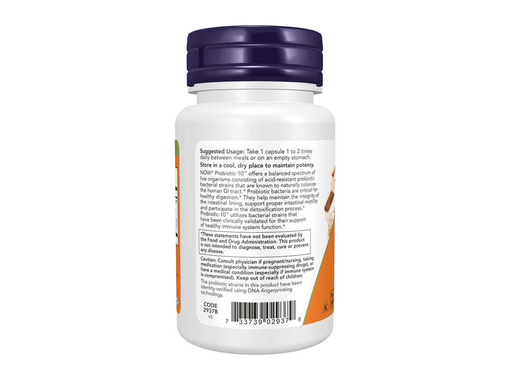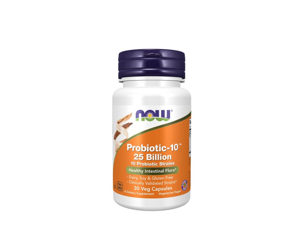 nOW® Probiotic-10™ nabízí vyvážené spektrum živých organismů složené z kmenů probiotických bakterií odolných vůči kyselinám, o kterých je známo, že přirozeně kolonizují lidský trávicí trakt. Probiotické bakterie mají zásadní význam pro zdravé trávení. Pomáhají udržovat integritu střevní sliznice, podporují správnou střevní motilitu a podílejí se na detoxikačním procesu. Probiotic-10™ využívá bakteriální kmeny, které byly klinicky ověřeny pro podporu zdravé funkce imunitního systému