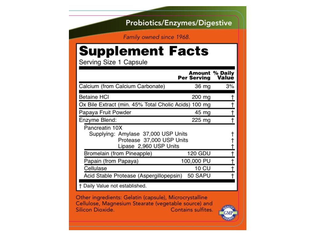 NOW® Super Enzymes je komplexní směs enzymů, která podporuje zdravé trávení. Složení Super Enzymů s bromelainem, volskou žlučí, pankreatinem a papainem pomáhá optimalizovat rozklad tuků, sacharidů a bílkovin.