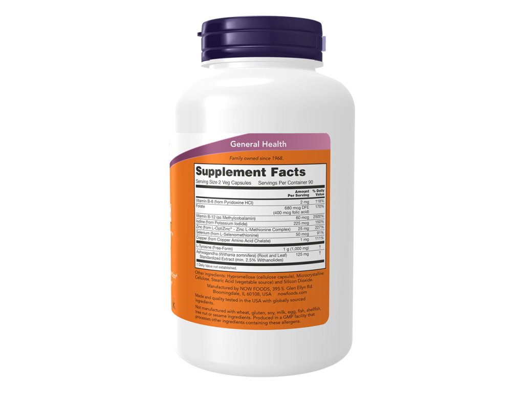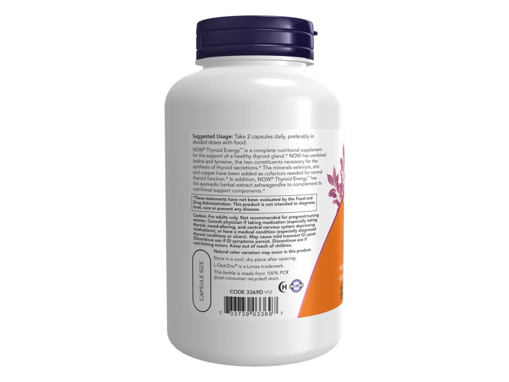 NOW® Thyroid Energy™ je kompletní doplněk stravy pro podporu zdravé štítné žlázy. Společnost NOW zkombinovala jód a tyrosin, dvě složky nezbytné pro syntézu sekretu štítné žlázy. Jako kofaktory potřebné pro normální funkci štítné žlázy byly přidány minerály selen, zinek a měď. NOW® Thyroid Energy™ navíc obsahuje ájurvédské bylinné extrakty z guggulu a ašvagandy, které doplňují složky podporující výživu.